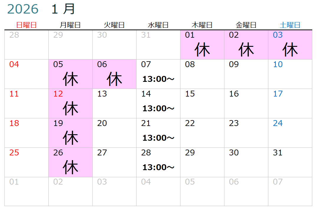 | 2025.12.24 | オンラインショップは12月30日~1月4日までお休みさせていただきます。 |