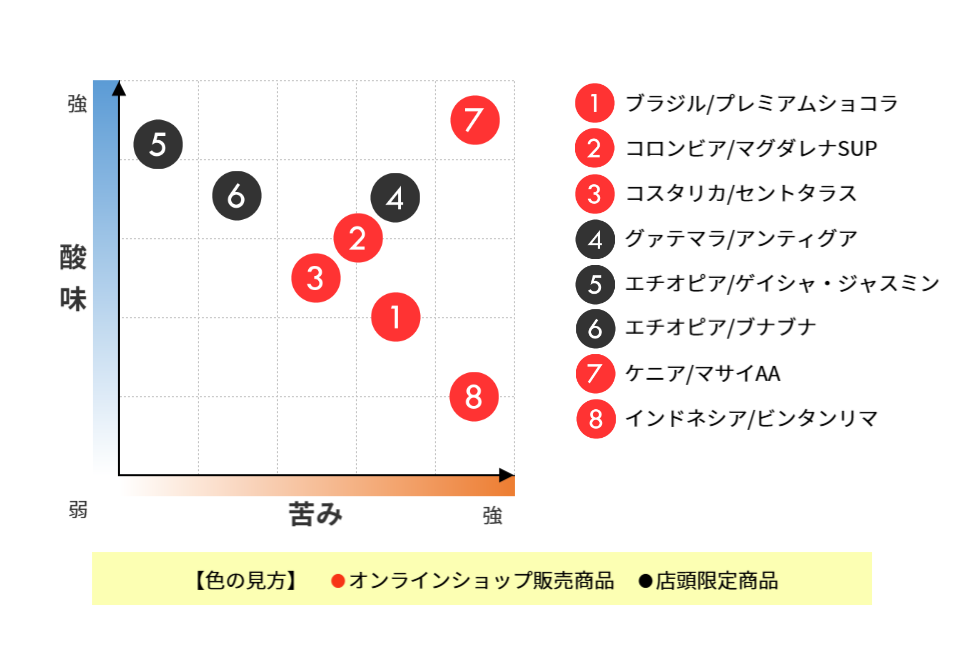酸味が強いコーヒーは、すっきりとした味わいでショートケーキ、フルーツタルト、焼き菓子、クロワッサン、トーストなどによく合います。
